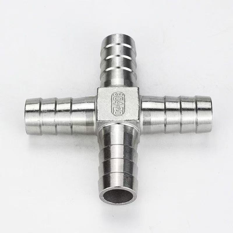 Senyanzvi yekugadzira pombi fittings muChina, Shenchi Factory inopa Cross-Type Pagoda Mvura Pipe Fitting-nzira ina-nzira yekusiyanisa chikamu. Muviri waro mukuru unoratidzira mana-akaumbwa "pagoda" (barbed) madoko, akagadzirwa kuti agovera yakaenzana yekuisa imwe yemvura mumitsara mitatu yemapazi kana kubatanidza akawanda ekupinda mune imwe. Yakagadzirwa kubva kundarira, 304 Stainless simbi, kana 316L Stainless simbi, chigadzirwa chinoratidza yakasarudzika corrosion resistance uye inokodzera kushandiswa mukurapa kwemvura, pneumatic system, kudiridza kwekurima, uye michina yekurapa. Mitsetse ine minzwa ine anti-slip groove dhizaini; kana ichishandiswa pamwe chete nehose clamps, inovimbisa kubatana kwakachengeteka, kufambisa kuisirwa nyore, uye inogonesa inoshanda "one-in, matatu-out" fluid diversion.